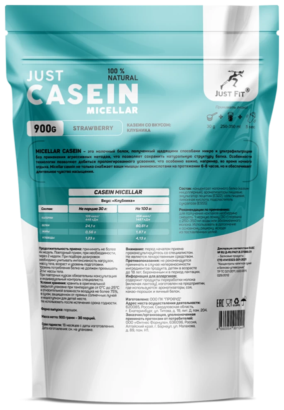 Just Fit Casein Micellar 900 грамм предлагает ряд преимуществ для спортсменов и тех, кто стремится поддерживать или нарастить мышечную массу.
