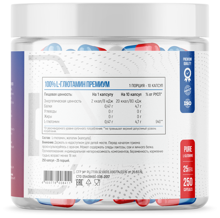 L-Glutamine - это незаменимая добавка для спортсменов всех уровней физической подготовки. Она разработана на основе одноименной аминокислоты, полученной из натурального сырья и прошедшего многоступенчатую обработку. Никаких сторонних примесей и наполнителей. Только биодоступный Глютамин в удобной форме капсул. Продукт прекрасно усваивается и не имеет побочных эффектов.