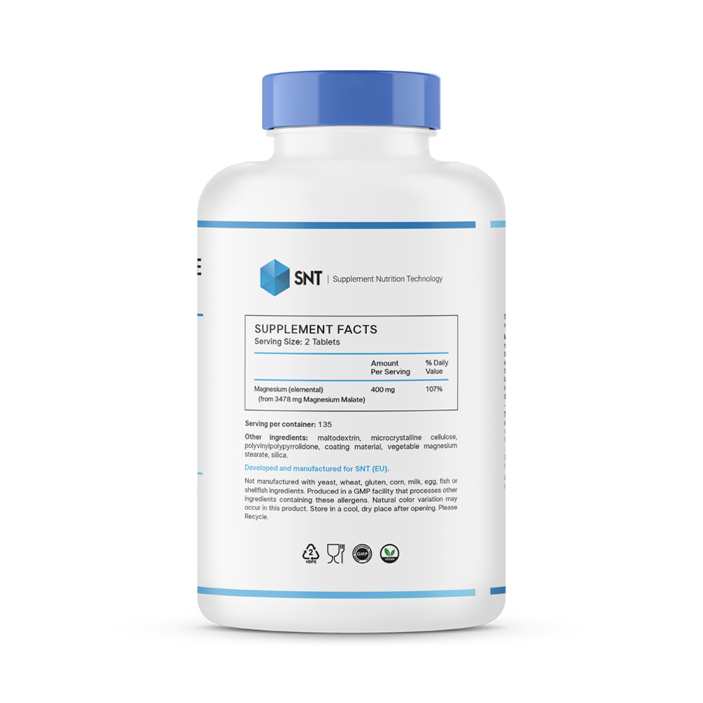 Малат магния - это соединение, полученное путем объединения магния с яблочной кислотой. Считается, что он лучше усваивается, чем другие добавки с магнием.