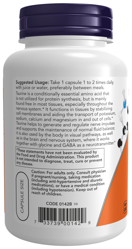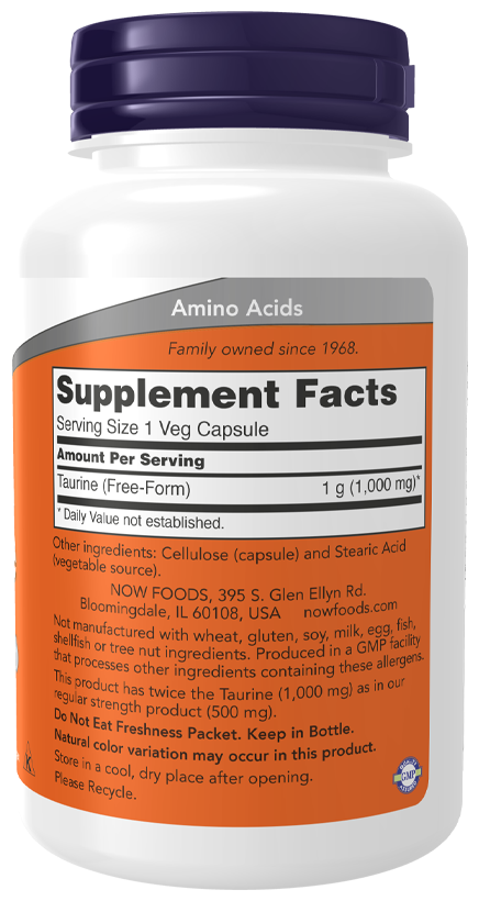NOW Taurine 1000 mg, 100 капсул