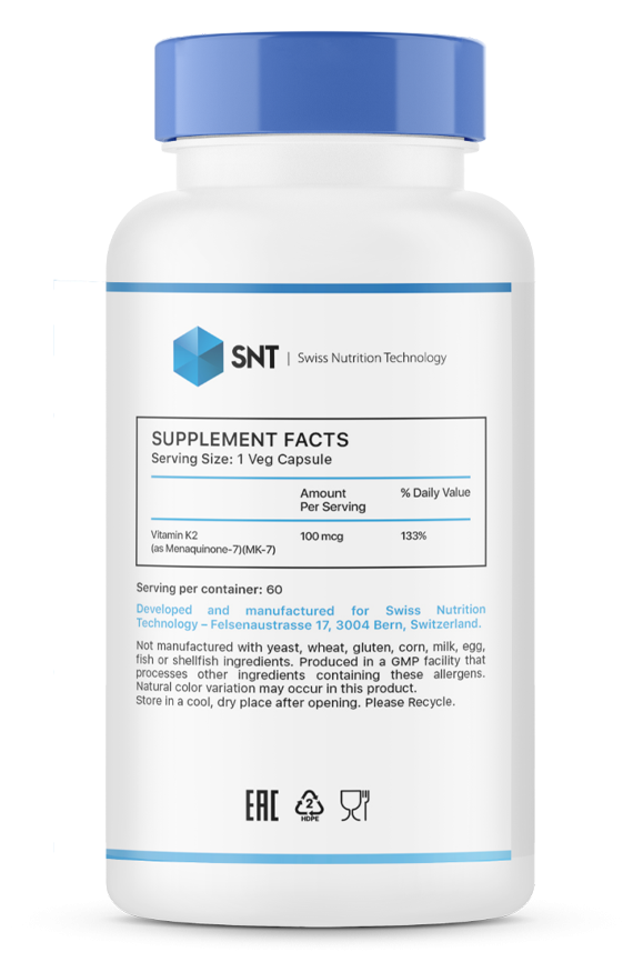 Известно, что витамин К отвечает за синтез нескольких факторов свертывания крови и формирование сильных, здоровых костей. Vitamin K2 MK7 - это уникальная биодоступная форма витамина К2 без сои, которая играет ключевую роль в поддержании здоровья артерий благодаря своей способности обеспечивать правильный обмен кальция в кровеносных сосудах и артериях.